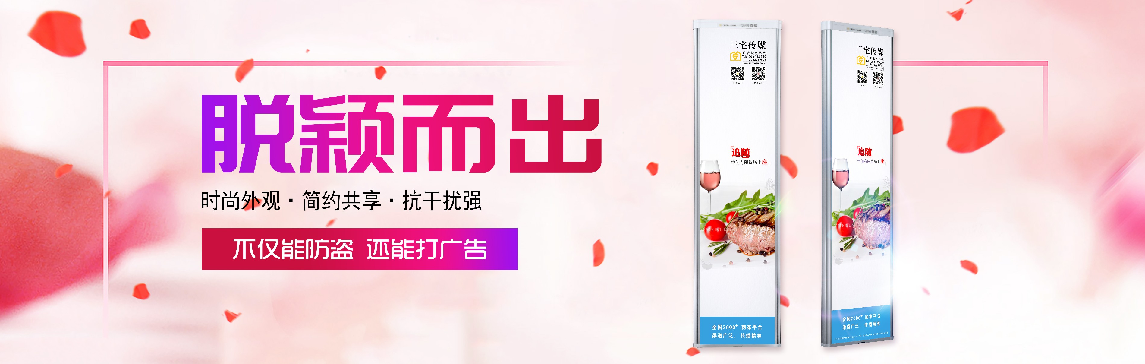 三宅传媒联合各城市品牌连锁超市以商超收银台出入口防盗门独创媒体形式广告场景满足途径点、等候点、售卖点等广告优势让企业 广告零距离传播社区日覆盖传播人次1.3千万,让企业宣传多位置、高精度、零距离传播媒体。广州三宅传媒争做行业 最具竞争力的高端品牌,并与各界朋友真诚携手以更好的服务社会共创EAS行业美好明天。